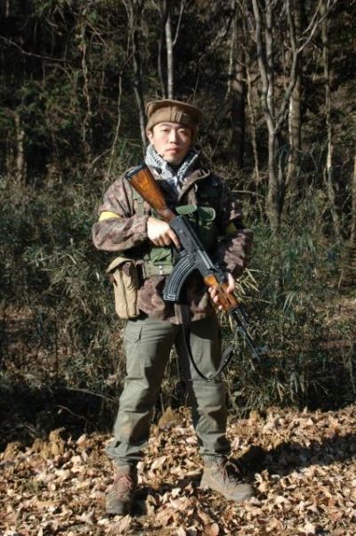 写真では見えにくいですが 5.11タクティカルにプレートキャリアー、武器にH&K-416を装備。