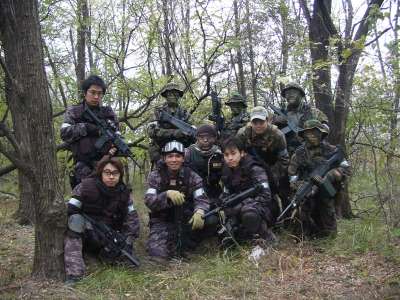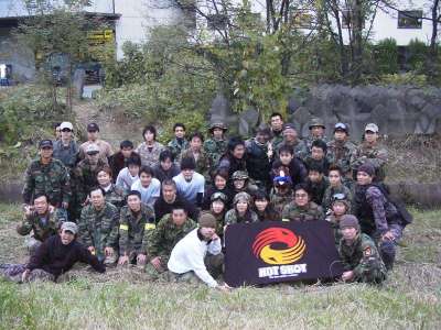 開戦10秒前、余裕の写真撮影。この後、川に沈没する人物が出るとは、
