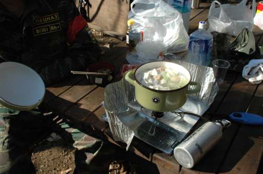 フィールドに調理器具を持ち込み、暖かい食べ物を作って食べる。