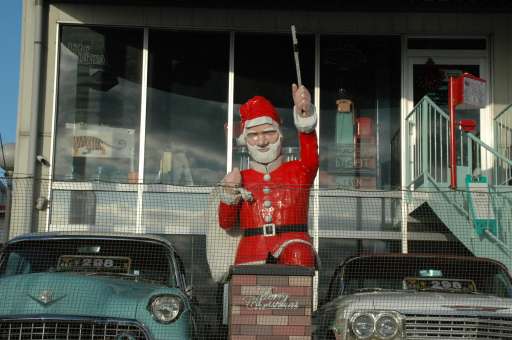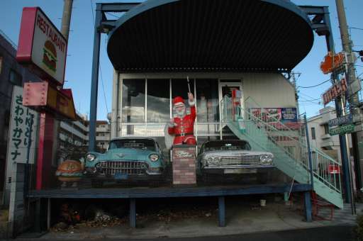 横田基地前のレストランにサンタクロースがいます。